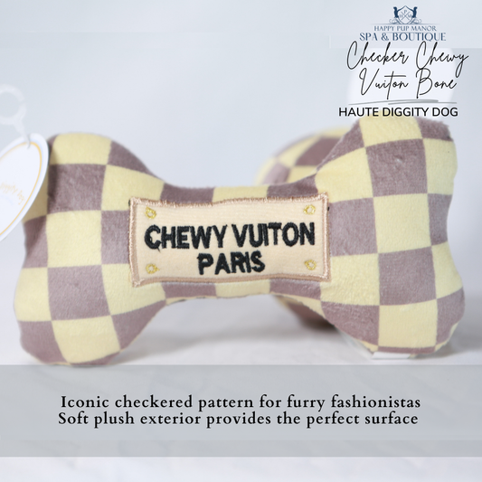 Checker Chewy Vuiton Bones Squeaker Dog Toy